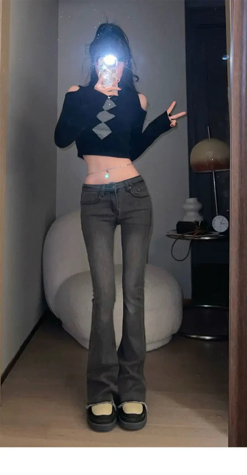 collective Womens Jeans Flared Woman Pants Skinny Trousers Bell Bottom